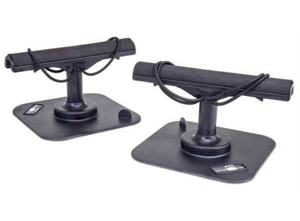 Rounded “T” bar and shock cords allow rods to be mounted at any angle, not just in line with the base. Rods are secured by fabric covered straps for extra security, it had also soft padding for the rods.