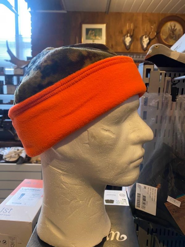 Deilig, tykk og varm og vendbar lue i tykk fleece. Ypperlig til all jakt – og spesielt fin når det jaktes flere sammen når behov for orange sikkerhetsfarge. Kan vendes så den blir i full kamuflasje – eller helt orange – eller litt av hvert. Tenk sikkerhet – og komfort